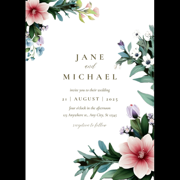 Wedding Invitation Template - Water Color Floral Theme, Editable wedding templates, Printable wedding invitations, DIY wedding invitations, Instant download invitations, Destination wedding invitations