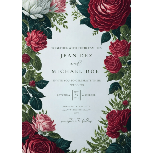 Wedding Invitation Template - Rose Bouquet Theme, Editable wedding templates, Printable wedding invitations, DIY wedding invitations, Instant download invitations, Destination wedding invitations,