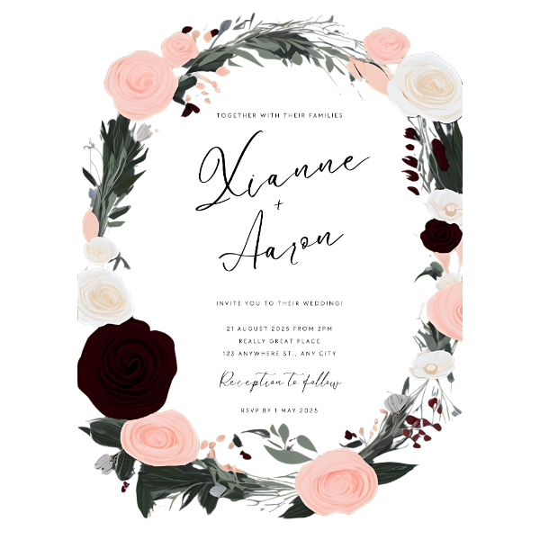 Wedding Invitation Template - Pink, White and Red Floral Circle Theme, Editable wedding templates, Printable wedding invitations, DIY wedding invitations, Instant download invitations, Destination wedding invitations,