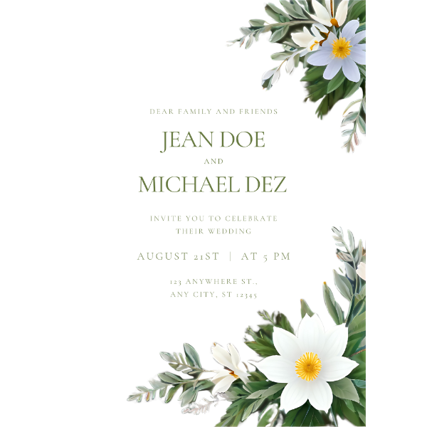 Wedding Invitation Template - Green and White Florals, Editable wedding templates, Printable wedding invitations, DIY wedding invitations, Instant download invitations, Destination wedding invitations,