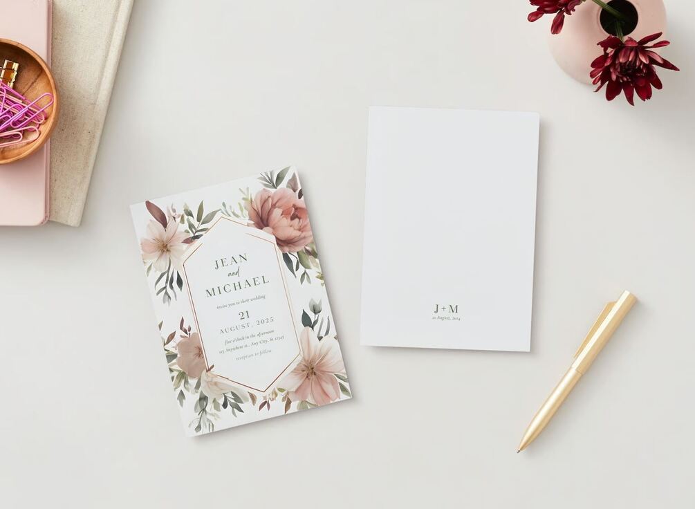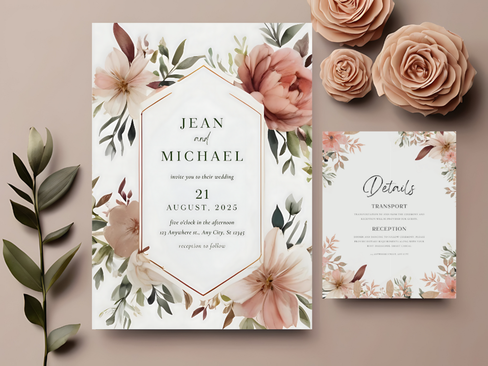 You'll a get a Canva link to download and edit the text in the template. Then you can contact a printing company to print your beautiful wedding invitations.