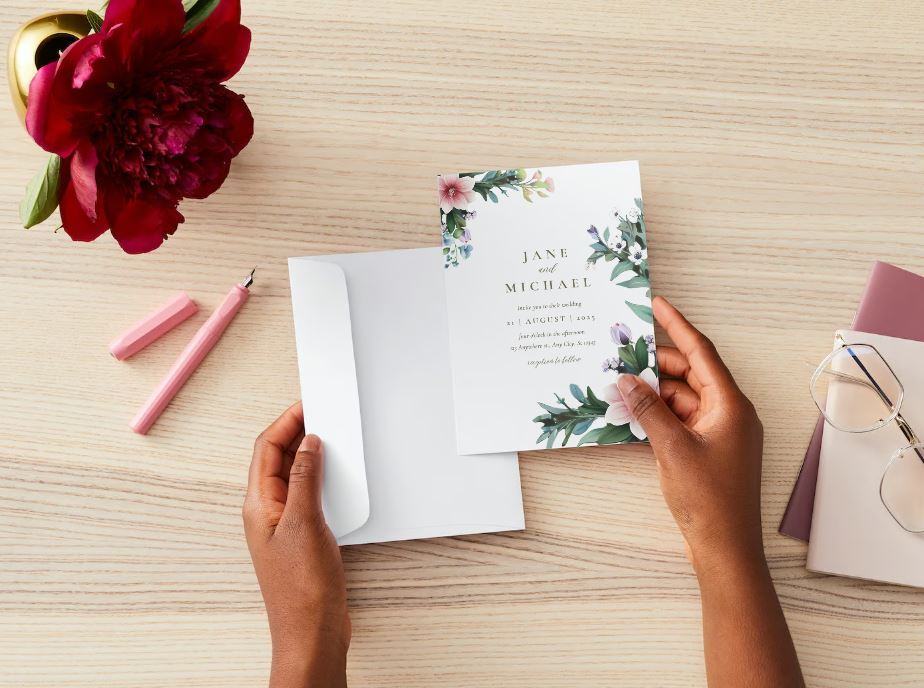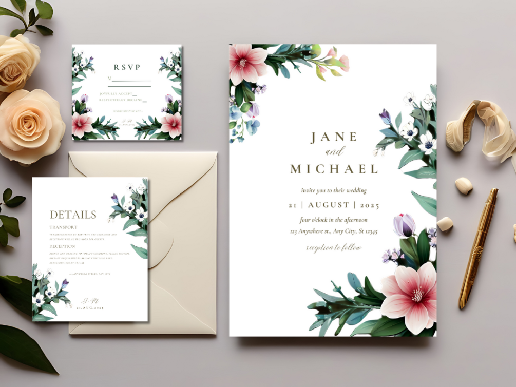 You'll a get a Canva link to download and edit the text in the template. Then you can contact a printing company to print your beautiful wedding invitations.