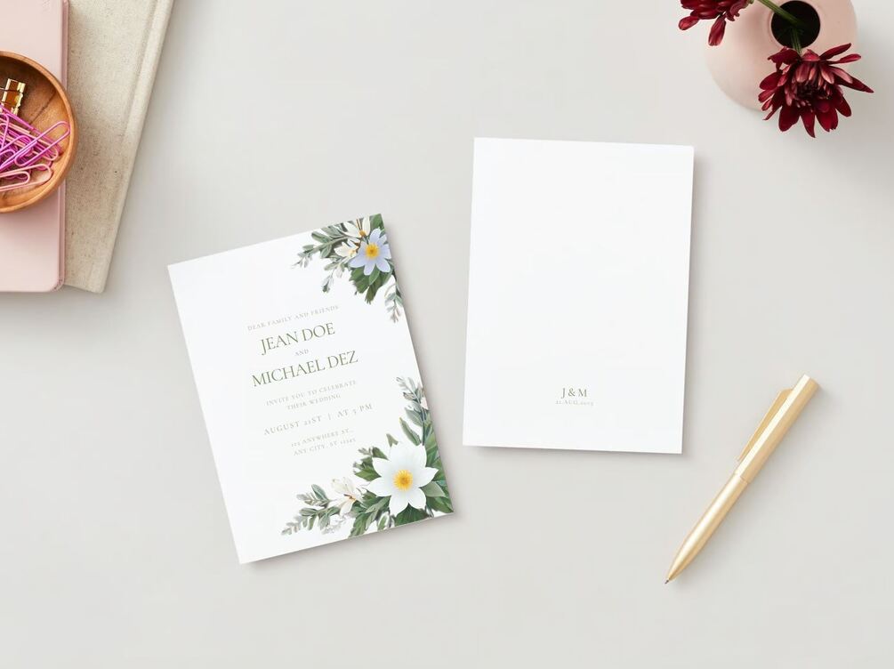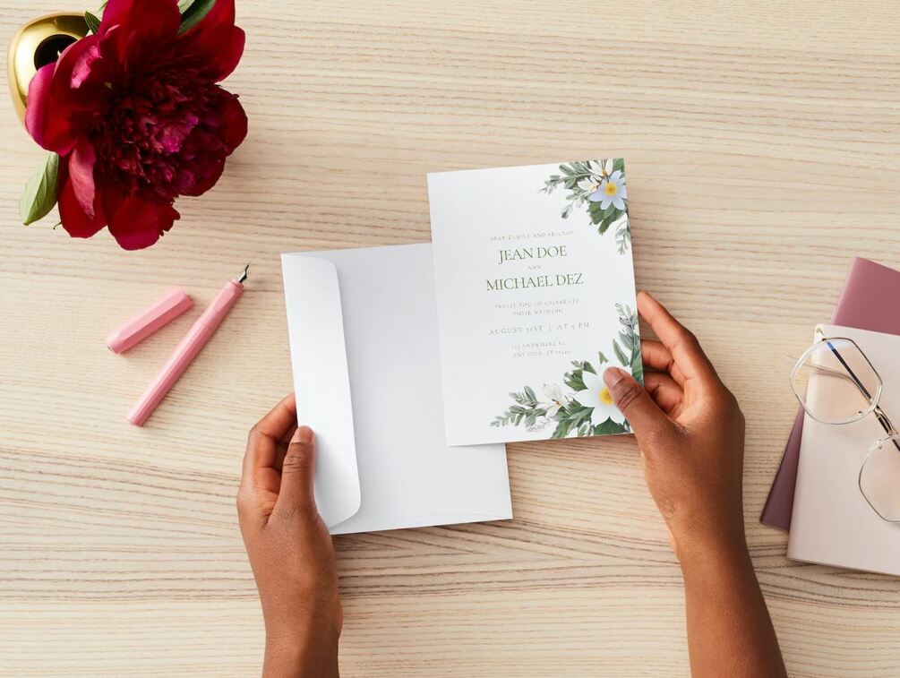You'll a get a Canva link to download and edit the text in the template. Then you can contact a printing company to print your beautiful wedding invitations.